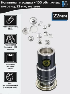 Насадка для установки люверсов 17мм + 100 люверсов с шайбами