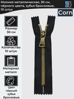 Молния металл, 30 см, чёрная, зубья бронзовые,(Corn)