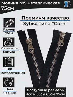 Молния №5, 75см, двухсторонняя “Corn”, 5 шт, серебристая