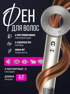 Фен для волос профессиональный мощный с насадками 4 в 1
