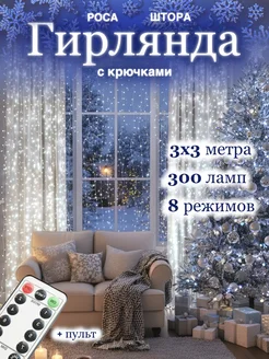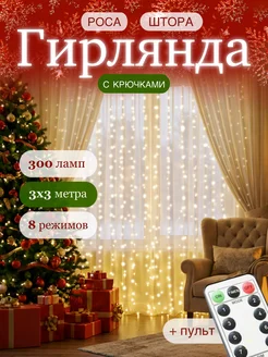 Гирлянда штора роса новогодняя на окно 3*3 на новый год
