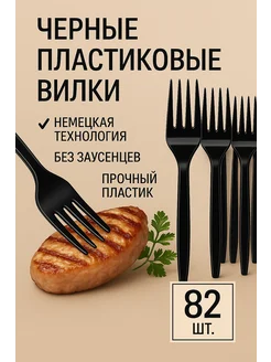 Вилки одноразовые пластиковые черные 82 шт, приборы 165 мм