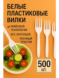 Вилки одноразовые пластиковые белые 500 шт, приборы 165 мм