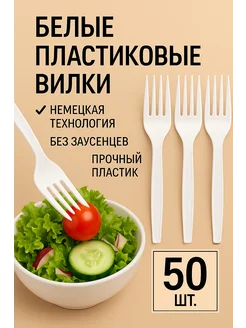 Вилки одноразовые пластиковые белые 50 шт, приборы 165 мм