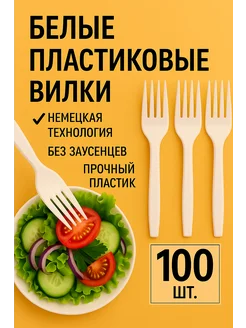 Вилки одноразовые пластиковые белые 100 шт, приборы 165 мм
