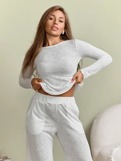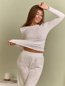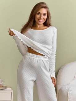 Пижама со штанами с карманами ажурная хлопок домашний костюм