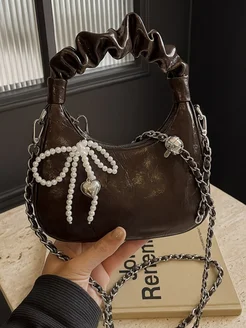 Сумка бордовая мини хобо полумесяц лакированная на плечо