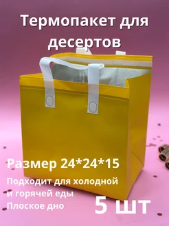 Термопакет для десертов, еды желтые 24*24*15 см 5 штук