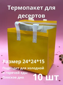 Термопакет для десертов, еды желтые 24*24*15 см 10 штук
