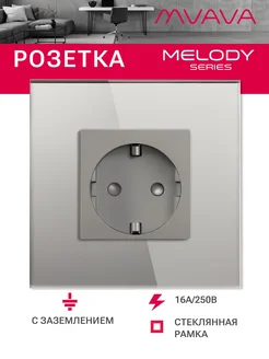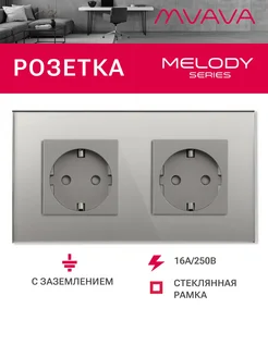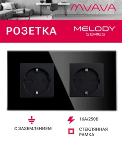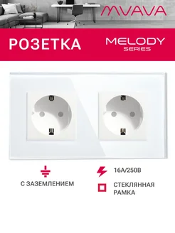 Розетка электрическая 2 поста, рамка стекло 157х86мм