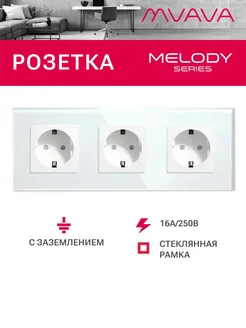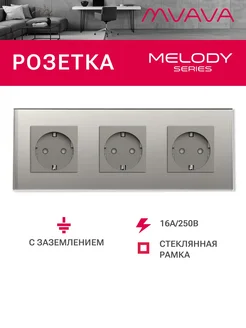 Розетка электрическая 3 поста, рамка стекло 228х86мм