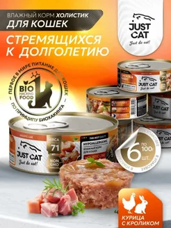 Влажный корм для кошек, с курицей и кроликом 100 г х 6 шт