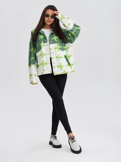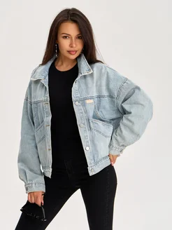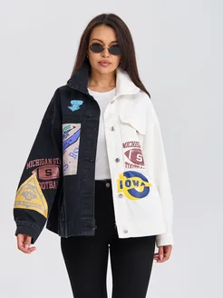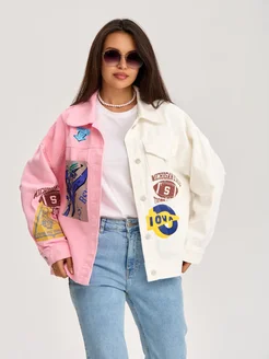 Джинсовая куртка с ярким принтом джинсовка оверсайз