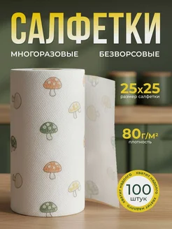Салфетки для уборки в рулоне многоразовые 100 шт. грибы