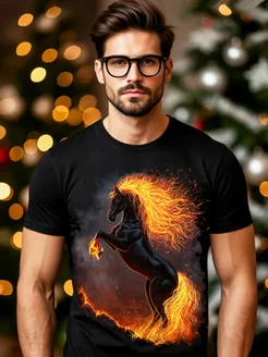 Футболка с огненной лошадью символ года 2025