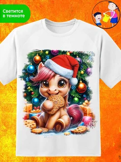 Футболка новогодняя хлопок с принтом лошадь символ 2026