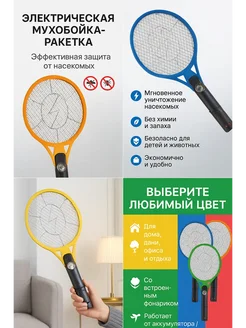 Электрическая мухобойка ракетка от насекомых с фонариком