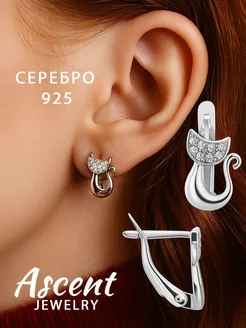 Моносерьга серебро 925 с фианитами, диаметр 6 мм