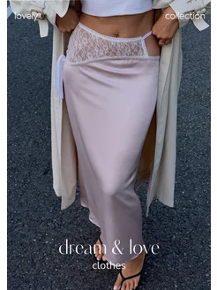 Юбка шелковая с кружевом розовая