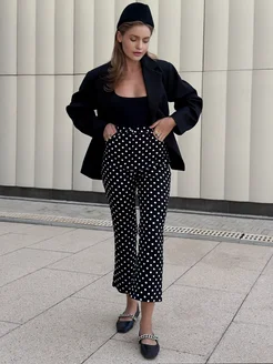 Брюки в горох укороченные