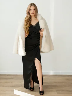 Платье-комбинация вечернее длинное с кружевом и разрезом