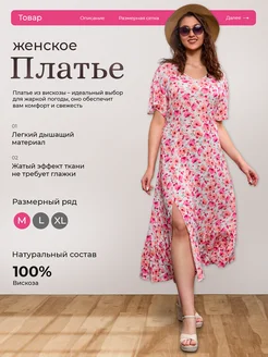 Платье длинное вискоза с коротким рукавом свободного силуэта