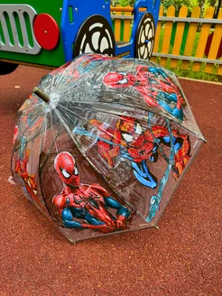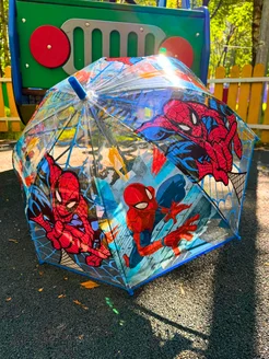Зонт-трость прозрачный детский со свистком Человек Паук