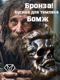 Бусина для темляка паракорда брелка череп Бомж EDC