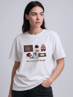 Футболка оверсайз белая базовая с принтом Russian girl mood
