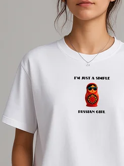 Футболка russian girl оверсайз с принтом белая базовая