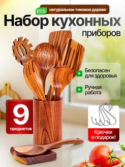 Набор кухонных принадлежностей из дерева 9 предметов