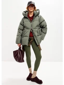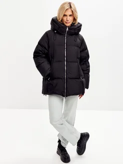 Пуховик короткий с капюшоном на натуральном пухе