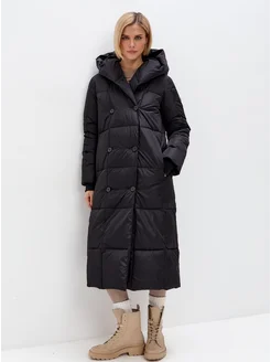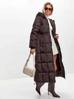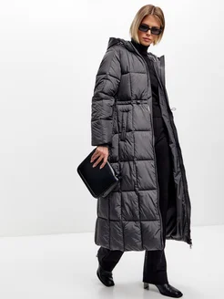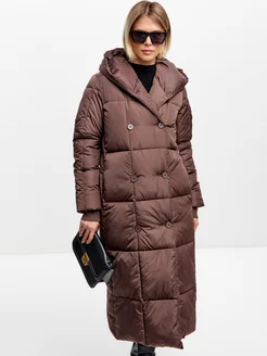 Пуховик зимний длинный стеганый с капюшоном