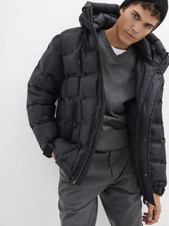 Пуховик короткий стеганый с капюшоном на натуральном пухе