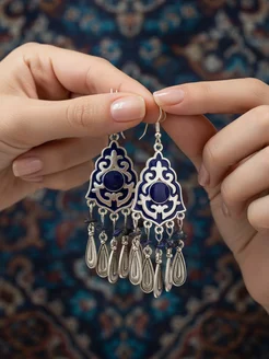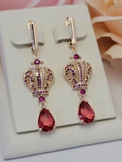 Серьги корона малиновые с разноцветными камнями бижутерия
