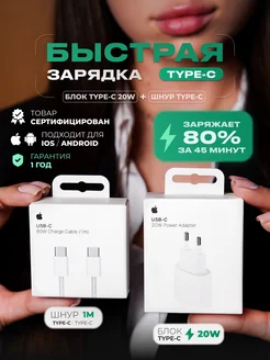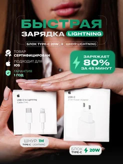 Быстрая Зарядка Lightning Type-C для iPhone 14 13 12 11