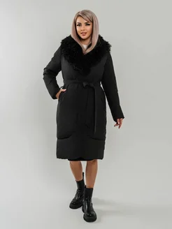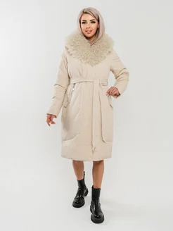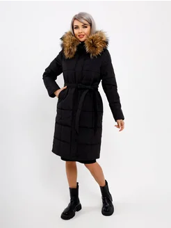 Пуховик зимний длинный с мехом и капюшоном