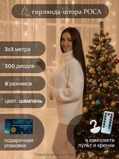 Новогодняя гирлянда-штора, роса 3*3м 300 светодиодов, USB