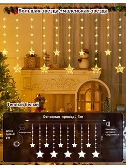 Гирлянда штора звезды 3м 3.5 ватт теплый белый
