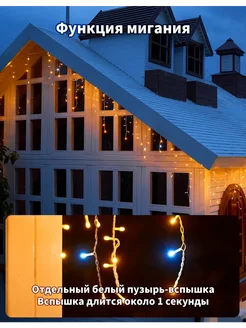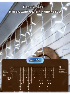 Гирлянда бахрома уличная 3м белый свет и мигающий