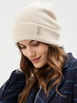Шерстяная шапка двойная теплая с отворотом осень зима