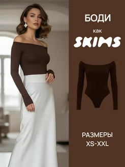Боди коричневое с открытыми плечами и длинным рукавом
