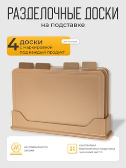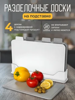 Доска разделочная пластиковая набор с подставкой 4 шт