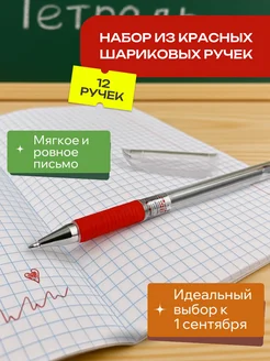 Ручка шариковая красная паста для школы и офиса набор 12 шт