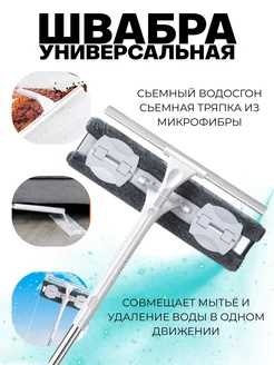 Швабра с силиконовым скребком для окон и полов