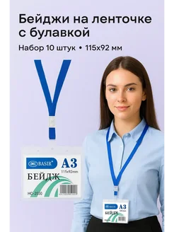 Набор бейджей горизонтальных на ленточке с булавкой, 10 шт
