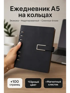 Ежедневник деловой кожаный на кольцах с магнитным замком