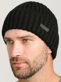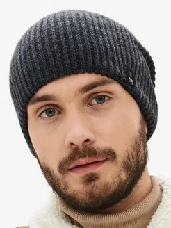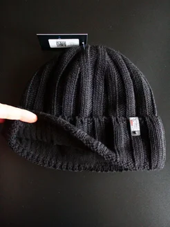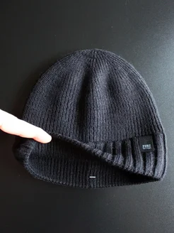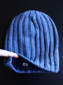 Шерстяная шапка бини двойная с отворотом осенняя спортивная