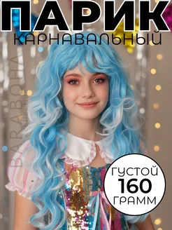 Парик карнавальный голубой мелированный кудрявый Мальвина