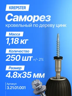 Саморезы кровельные по дереву цинк 4.8 х 35 мм